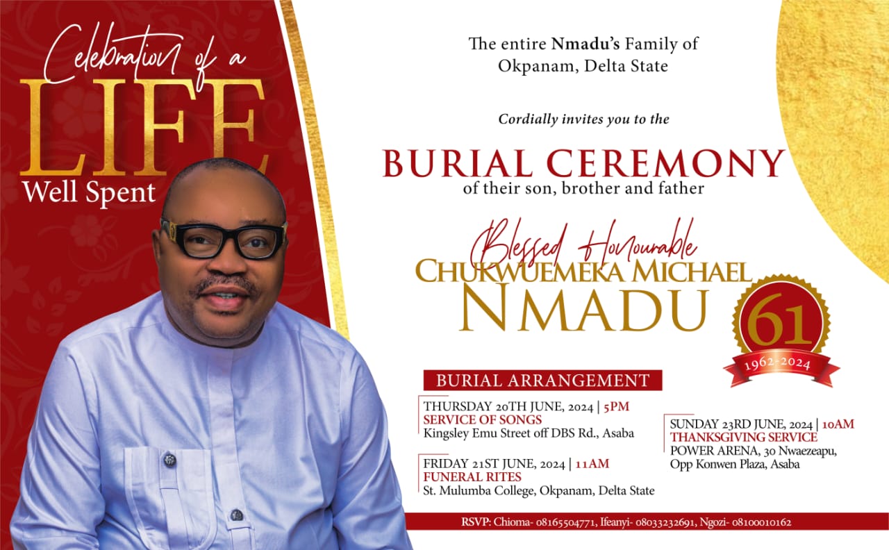 Hon. Emeka Nmadu whose death was reported recently will be committed to mother earth on Friday, the 21st of this month, according to the family.