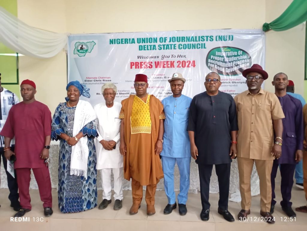 I thank the Chairman and Members of Council of the Nigerian Union of Journalists, Delta State, for inviting me to speak on this important occasion of the NUJ Delta State Council 2024 Press Week. The role of the media is central in any social democracy and the theme of this Press Week is most apt, bearing in mind the leadership challenges that plague our dear country.