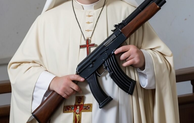 - Photo of a Priest with gun used for illustration purpose only.