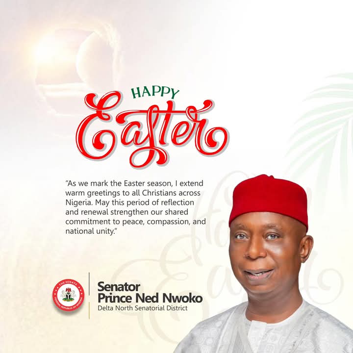 As Christians across the country celebrate the Easter season, Senator Ned Nwoko, representing Delta North in the National Assembly, has extended warm greetings to all Christians in Nigeria, calling for reflection, renewal, and unity.