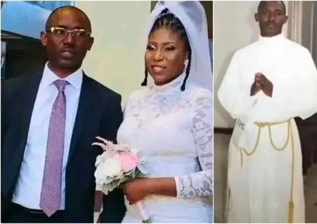 Fr Oghenerukevwe, a priest of the Catholic Diocese of Warri in Delta State, went viral when pictures of his marriage to his partner went viral on social media.